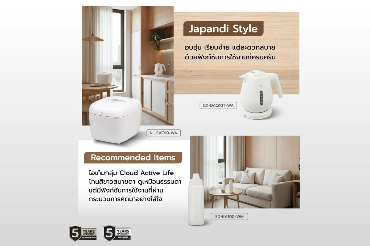 Zojirushi Lifestyle Set จึงไม่ใช่แค่เซตขายธรรมดา แต่เป็นเซตที่เราคิดไปถึง “องค์ประกอบของบ้าน” ซึ่งจะช่วยให้ทุกอย่างดูลงตัว และช่วยให้บ้านของคุณมีความินิมอลมากขึ้น